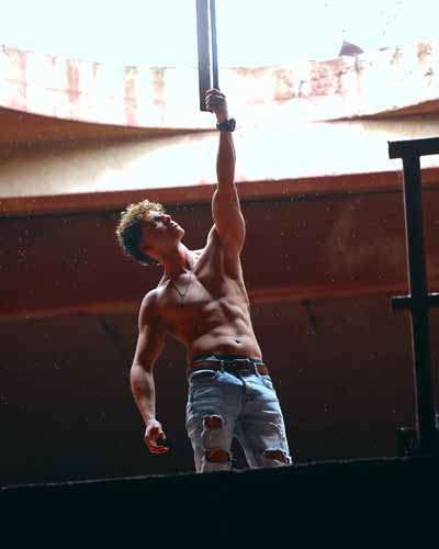 La "salle rouge" donne une belle lumière tamisée de genre fitness. C'est à ce momment qi'il a commencé à pleuvoir (on voit les gouttes d'eau à l'arrière plan de certaines photos). Les modèles ont été placés de telle manière qu'il étaient à l'abri de la pluie. Certaines parties du batiment sont bien protégées de la pluie et coupées du vent, mais pas toutes. Il peut faire très froid dans les couloirs quand il y a du vent. C'est un endroit à visiter quand les températures sont clémentes. Ce qui ne fonctionne vraiment pas à cet endroit, c'est la météo variable. Il y a du soleil et je cours vers la piscine, je place le modèle, règle mon appareil et plus le soleil disparait et cela ne fonctionne plus. Je vais alors vers la salle rouge et une minute plus tard le soleil réapparait brusquement et l'effet n'est pas bon. Il n'est possible de prendre des photos par grand soleil dans la salle rouge qu'à certains moments de la journée, quand les rayons de soleil tombent au bon endroit.