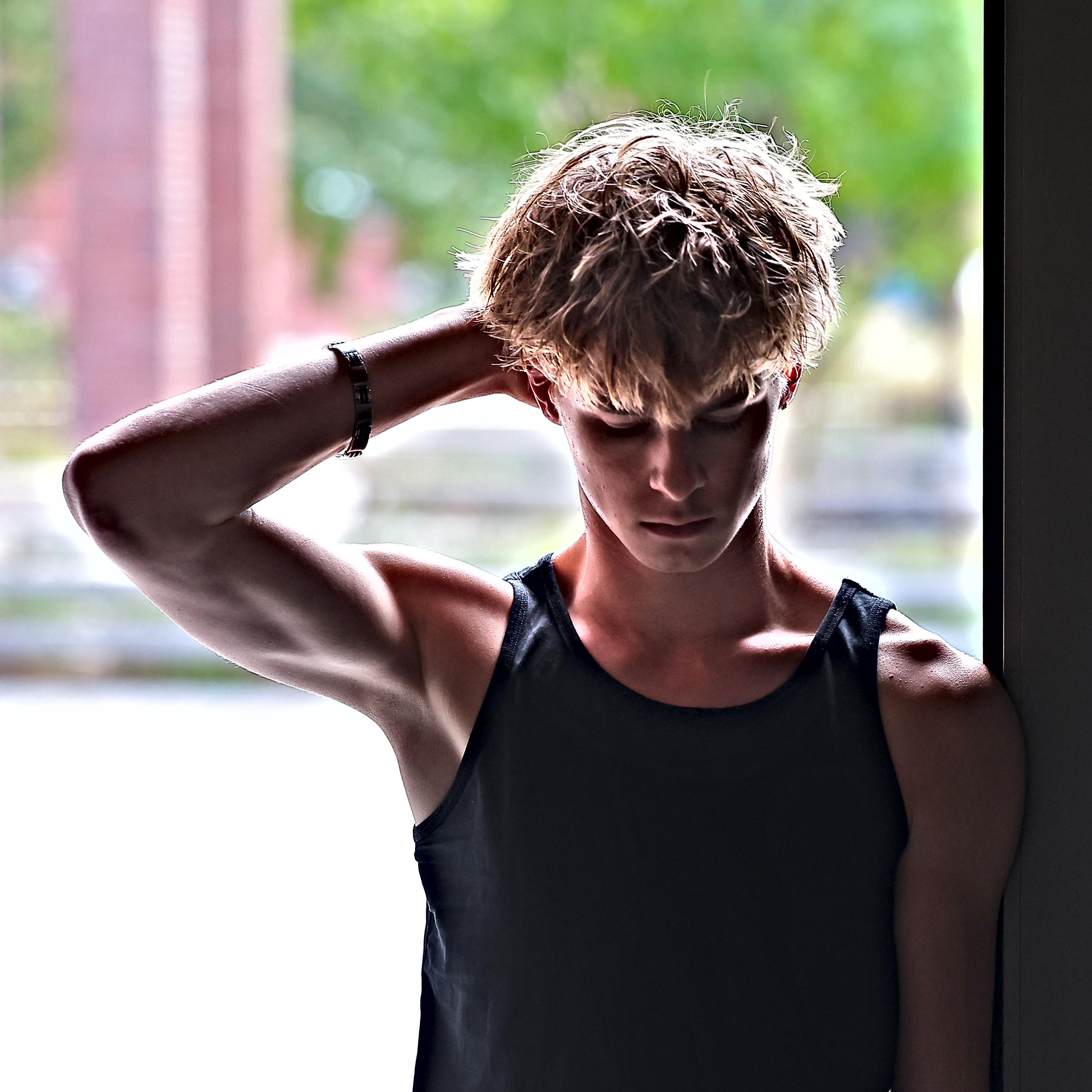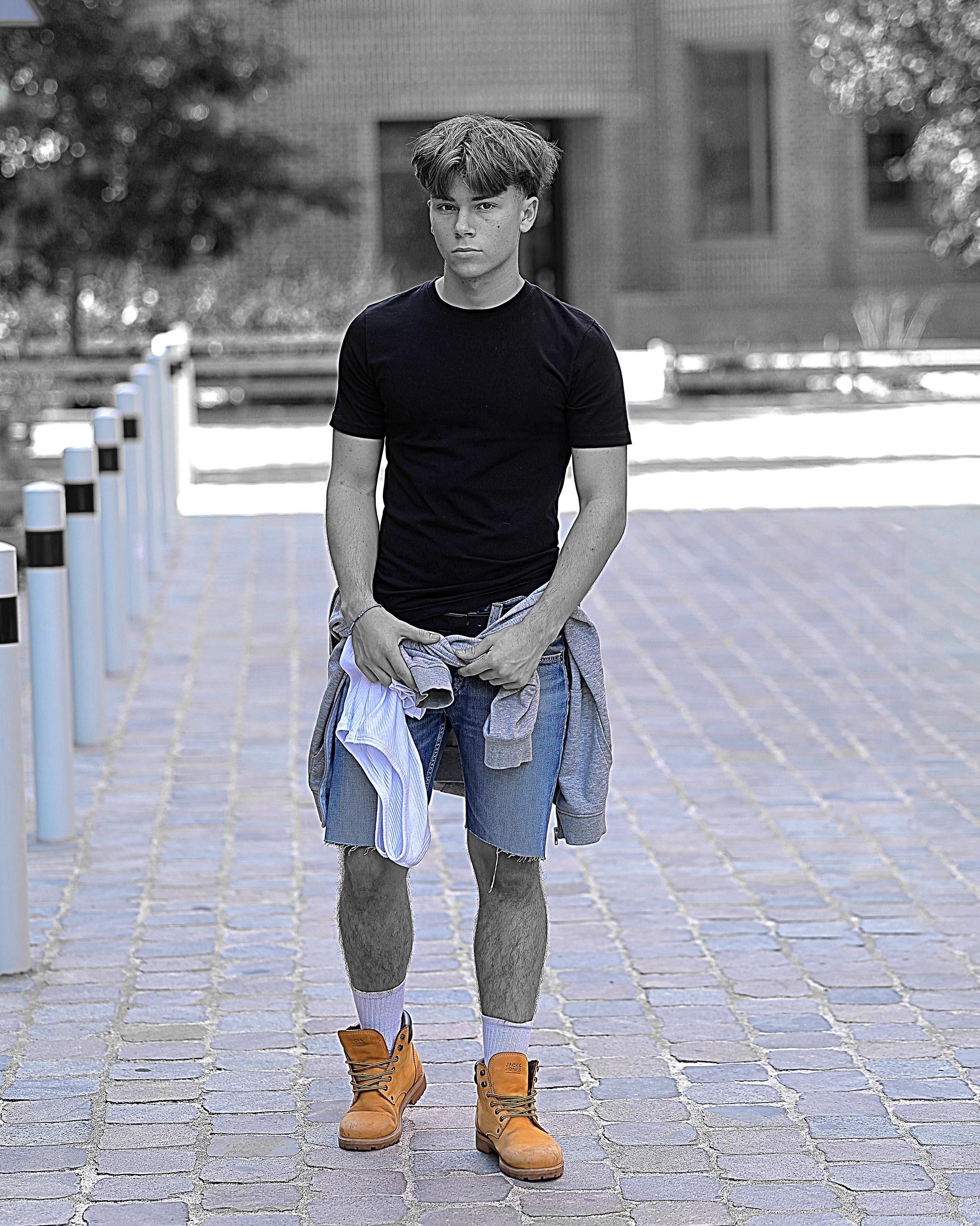 Lokatie voor een fotoshootTen eerste: het is nagenoeg onmogelijk een parkeerplaats te vinden in de buurt (havenlaan en picardstraat). De gemeente doet er alles aan om het bezit en het gebruik van de auto te ontmoedigen. Er is echter wel een garage onder de nieuwe gebouwen (ingang via rue Picard). Het -1 verdiep is voorbehouden aan de bewoners van de flatgebouwen en de andere mensen kunnen parkeren op -2. Tijdens de week zijn er weinig parkeerplaatsen beschikbaar, maar de mensen verlaten het parkeergebouw in de namiddag.Het koninklijk pakhuis is doorgaans rustig voor fotoshoots, het is echter niet mogelijk naar boven te gaan waar er beter licht is. Dit geldt ook voor het maritiem station. Het licht is diffuus en veroorzaakt geen harde schaduwen. Het park is niet geschikt voor een fotoshoot wegens de overmaat aan groen (weinig fotografen lijken dat te beseffen). Er is ook teveel volk in het park, zelfs op een werkdag. Maar ja, we zijn in Brussel en zoveel mensen die werken zijn er niet. De fotoshoot gebeurde aan de uitgang van het maritiem station (richting de nieuwe woontorens). Om een voldoende contrast te hebben werd de shooting gehouden in de buurt van de deuren. Dat werkt ook als er veel zon is, dan wordt de plaats gebruikt om het contrast te verminderen. In de namiddag werden we wel regelmatig gestoord door werkmensen die het gebouw verlieten richting de parking. We hebben hier de typische fitness verlichting (licht dat van boven komt), maar er zijn meer mogelijkheden om met het licht te spelen.. Ook aan de trappen van de woontorens kunnen er foto's genomen worden.. Die dag was het wisselvallig weer met volop zon en dan geen zon, zodat ik mijn fototoestel constant moest bijstellen (ik werk nu enkel nog in volledig manuele modus).