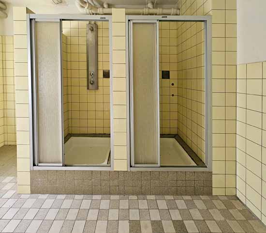 ![]() Het gebouw is in dezelfde staat gebleven nadat de militairen het kamp verlaten hebben. Men moet dit gebouw zeker bewaren, omdat het zo typisch is van de jaren 1950.