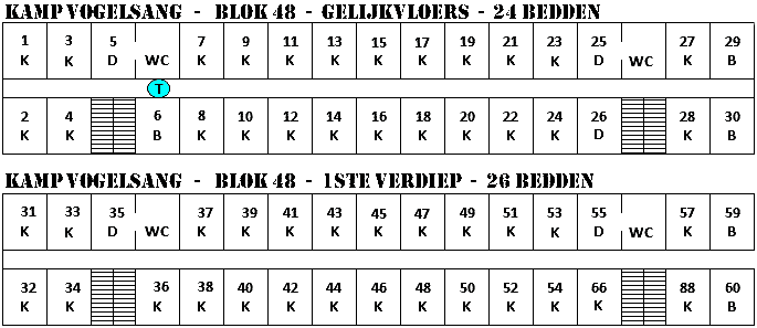 ![]() Blok 48 was een eenvoudig gebouw met 50 bedden in individuele kamers (K), 6 douches (D) , 4 toilettes, 4 bureaus (B) en één telefoon (T). Men ziet dat dit een logementsgebouw is voor de officieren aan de cremekleurige muren en de lichtblauwe deurstijlen. De officieren hebben een individuele kamer terwijl de militairen in grote slaapkamers verblijven. Omdat het zo typisch is voor de bouwstijl van de jaren 1950 zou het gebouw gebruikt kunnen worden als een klein legermuseum. Er bestaat tegewoordig geen informatie meer over wat de BSD de Belgische Strijdkrachten in Duitsland waren. Het is een stukje van de geschiedenis van België die verloren gaat. Het volstaat een paar beden te plaatsen, enkele bureaus neer te zetten, enkele krantenknipsels uit die tijd aan de muurt te hangen,... Tegenwoordig is het gebouw volledig leeg, in dezelfde staat als toen de militairen het kamp verlaten hebben. Het museum van de koude oorlog toont aan dat dit goed te realiseren is.