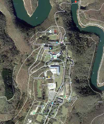Rechts een plan van de lokatie, hieronder heb je een lijst van de meest interessante gebouwen van Camp Vogelsang, samen met de huidige bestemming. Deze gebouwen zijn terug te vinden op het plan.
