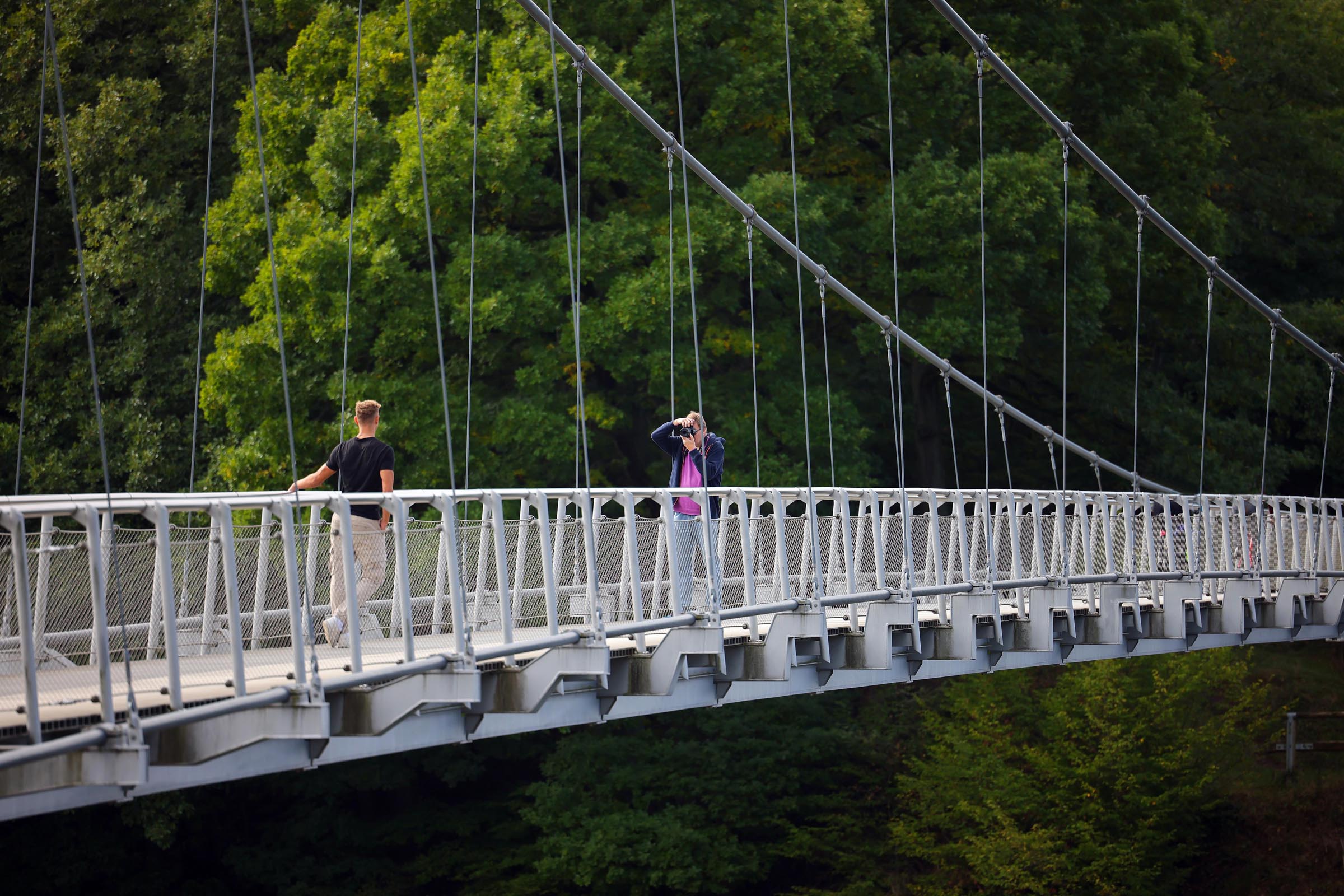 - Een fiets en voetgangersbrug die gebouwd werd na het vertrek van de belgische militairen (zie foto rechts). Het uitzicht is bijzonder en loont zeker de moeite, en terug naar boven klimmen is een goede oefening. Je kan eventueel je wagen parkeren naast het zwembad.