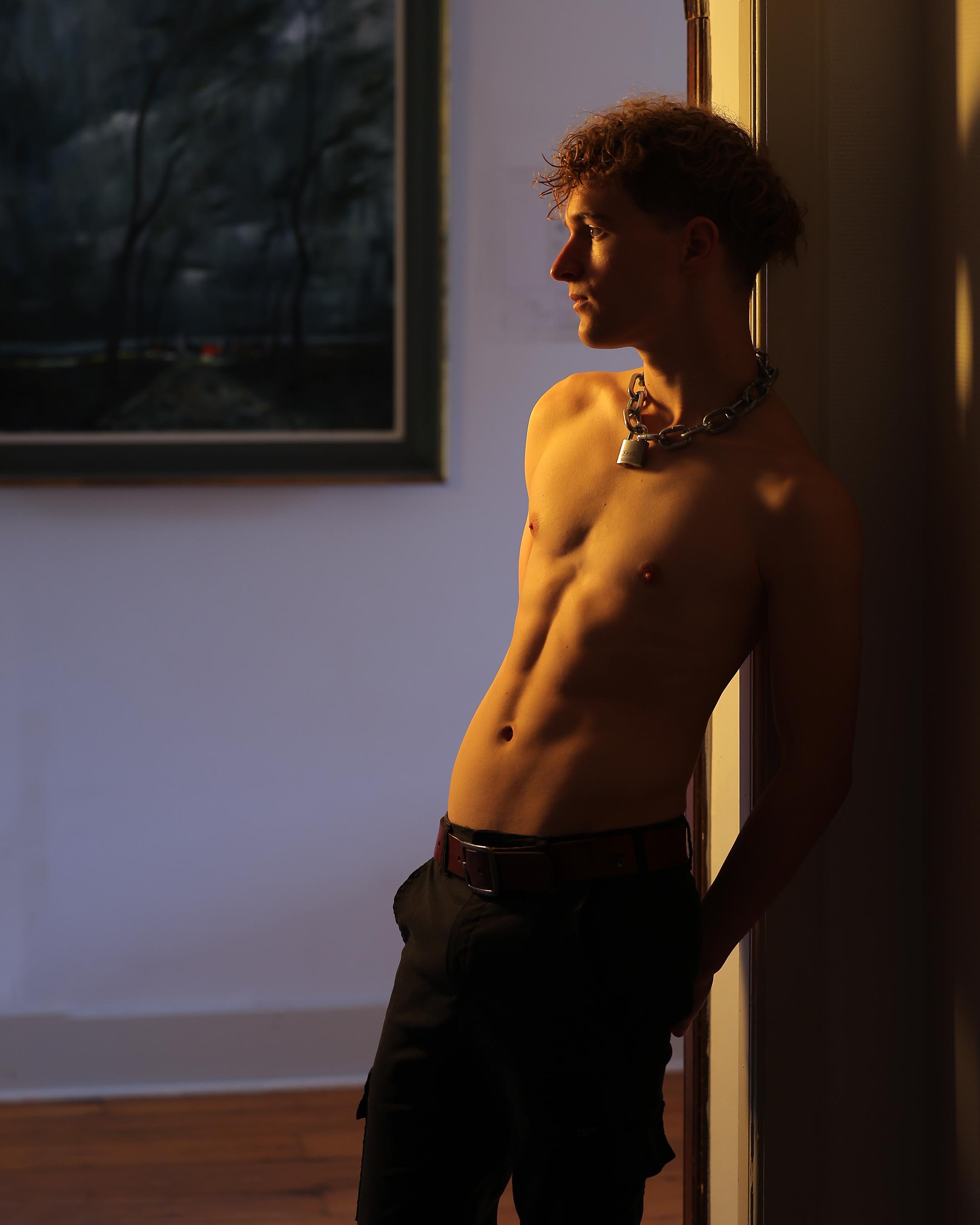 Zondag: staying homeThe intention was to go to the lock in Andenne today. It is a nearby place with many possibilities: fashion and casual at the lock, fitness and urbex at the quarry. The photographers who still had to pack their stuff were not really interested. It is a fact that the photographers take more and more stuff, while I only worked with my continuous light on batteries (and only in the house).So we stayed home and I did a photo shoot in the house, in the stairwell (with side light) and in a doorway (with light from my continuous light sources). My lights have been modified in the meantime. They were originally intended to work with two small 15V transformers. I made an inverter to convert the 12V of my battery pack to 15V (on 12V the lights cannot deliver their maximum power). Using a battery is easier even indoors: you don't have to look for an extension cord. The advantage of my continuous light lamps is that you can set the power and color temperature of each lamp individually. You can also make sure that you get the impression that we have a sunset. In this case you have to set the camera to a manual white balance, so that it does not try to compensate for the sunset colors. Mémorial Interallié