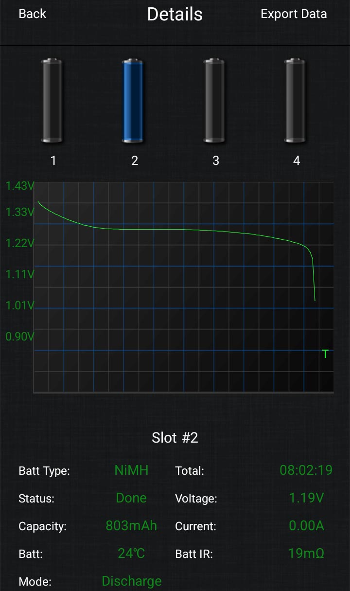 Finalement, après de nombreux test pratiques, je ne peut pas recommander ce chargeur si vous ne rechargez que des accus NiMH au format AA et AAA. Le fonctionnement du chargeur est compliqué (il faut vraiment employer l'application pour smartphone) et ce type d'accu fait mauvais contact dans le chargeur. Un chargeur plus adapté est le Powerex.