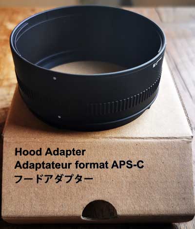 L'adaptateur se visse entre l'optique et le pare soleil classique (destiné aux appareils plein champ) et réduit le champ de vision. Cet adaptateur ne peut évidemment être utilisé qu'avec les appareils APS-C, car il provoque un vignetage extrème.
