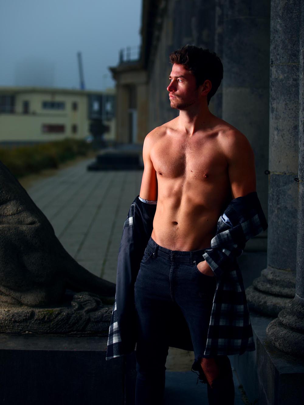 Si dans les salles de fitness on utilise une lunière très concentrée qui vient du haut pour accentuer la musculation, rien ne vous enpèche de créer un effet identique avec la lumière qui vient du bas.