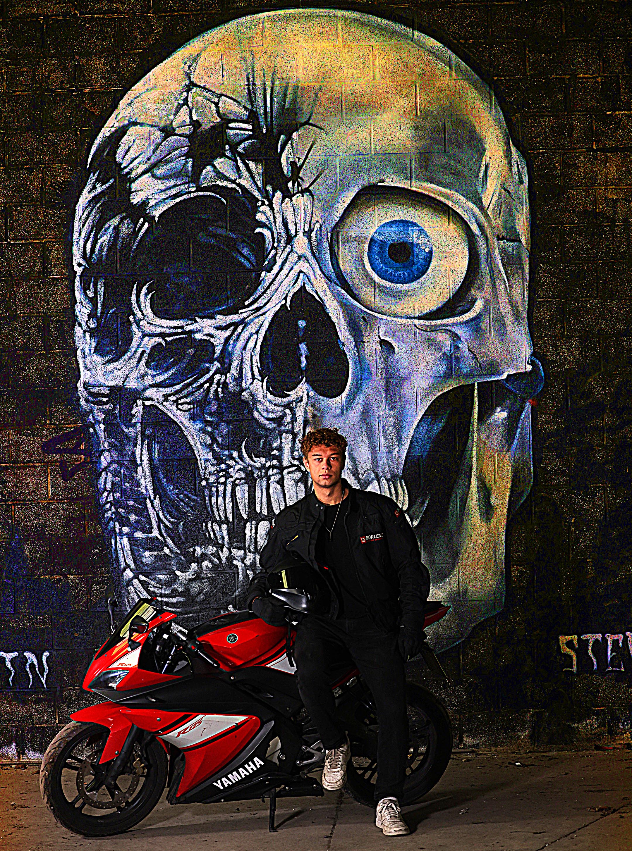 Un des modèles qui avait l'année passé une carrure athlétique a trouvé une petite amie et a fort grossi, c'est typique. Il est surtout venu aux Shooting days pour qu'on photographie sa nouvelle moto.