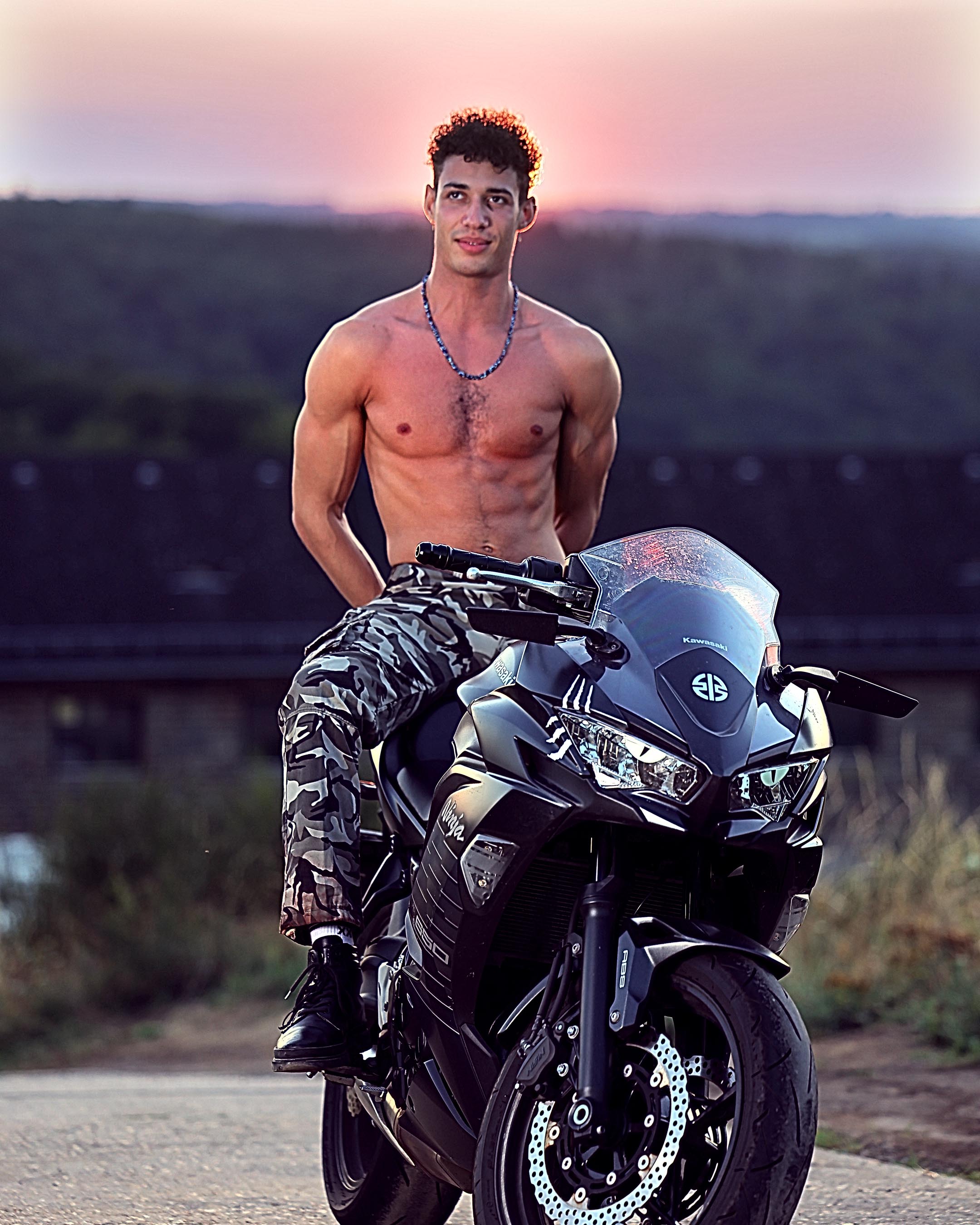 Le premier jour on en a profité qu'un des modèles est venu en moto pour prendre des photos sur ce thème. Pour l'occasion j'ai pris une combinaison de motard supplémentaire.