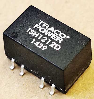 Les convertisseurs intégrés ont généralement un petit transfo. Le circuit de sortie est alors isolé du circuit d'entrée (isolation de plus de 1000V). Les circuits avec entrée et sortie isolés ont souvent un moins bon rendement que les circuits non-isolés. Ces convertisseurs intégrés n'ont pas de stabilisation de la tension.