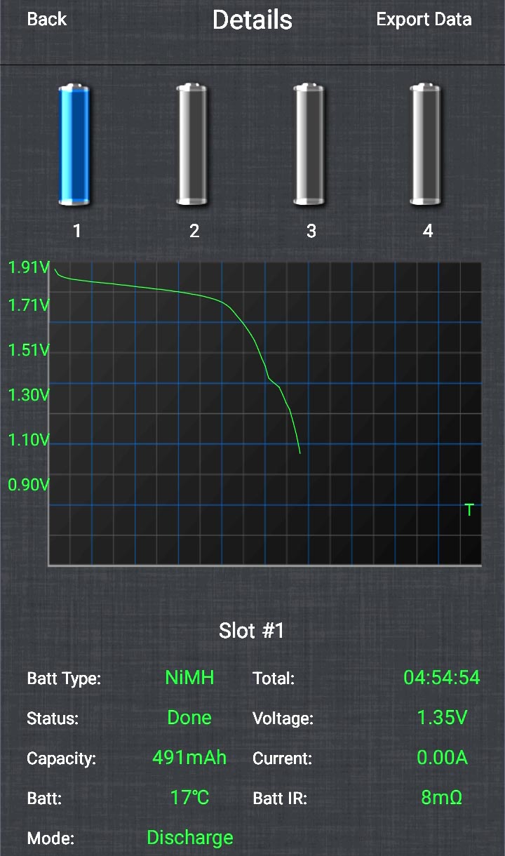 La capacité du meilleur accu est de 491mAh (au lieu de 1500mAh), les autres éléments avaient une capacité inférieure avec un élément ayant une capacité de 300mAh. Le test des accus NiZn (et autres types d'accus) se trouve ici.
