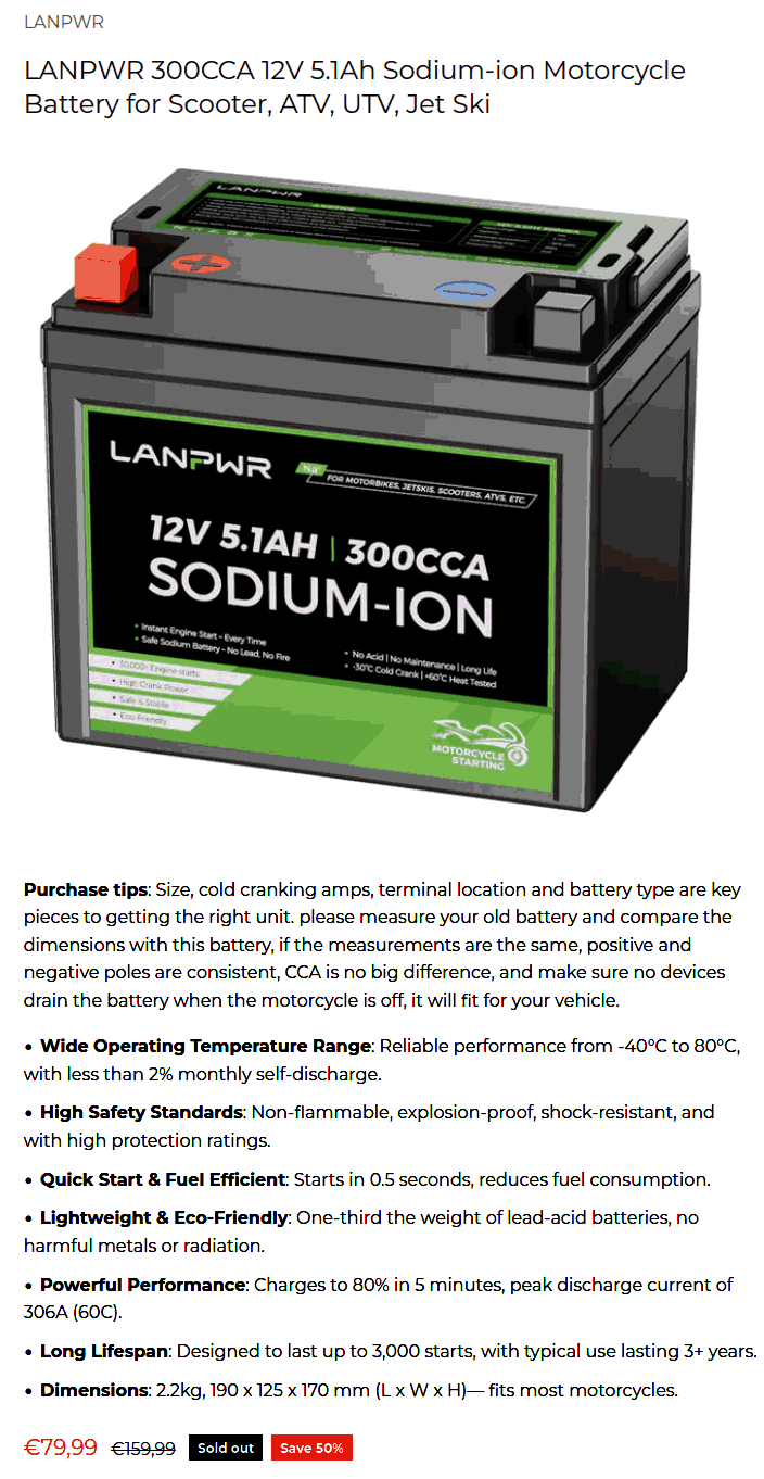 La technologie sodium est très récente et la production ne fait que commencer. Début 2026 je n'ai trouvé que des vendeurs chinois (Alibaba, aliexpress,...) qui ne sont absolument pas fiable, jamais je n'acheterai de batteries chez eux.