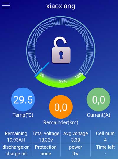 Le logiciel bluetooth pour controler l'état des accus Jubatec provient d'une firme "Xiaoxiang". Le logiciel est décrit séparément car il permet de nombreuses fonctions.