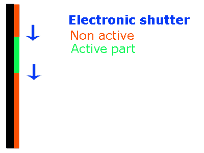 Le résultat pratique est le même qu'avec un obturateur mécanique. Le haut du capteur est actif a un autre moment que le bas du capteur. Les distorsions qui peuvent apparaitre sont le rolling shutter (obturateur déroulant... et déroutant pour certains). L'effet est également visible avec les appareils à obturateur mécanique.