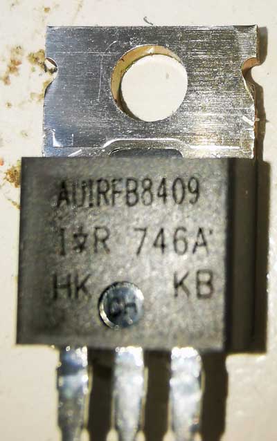 De mosfet is een IRFB8409 die speciaal ontworpen is voor automotive toepassingen.