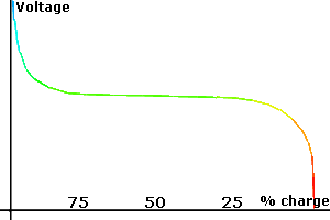Als de accu volledig ontladen is, dan wordt de belasting ook automatisch uitgeschakeld. De spanning blijft redelijk constant gedurende de volledige ontlading en het is moeilijk de ladingstoestand te bepalen aan de hand van de spanning. Als de spanning onder de 12.5V komt, dan is de accu grotendeels leeg en kan die plots uitschakelen.
