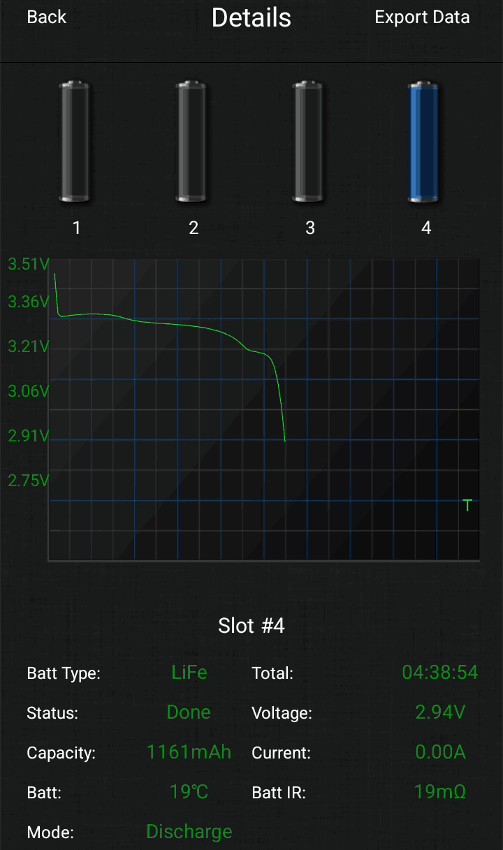 De accu kan 3.72Wh aan energie opslaan, dit is minder dan wat op de accu aangeduid staat (dit verwonderd mij al lang niet meer). Een kleinere NiMH in het meer bekende AA formaat kan 2.5Wh opslaan. Wat ik al langer wist: je moet geen LFP accu's kopen omdat ze een hogere capaciteit of energie zouden hebben ten overstaan van NiMH accus.