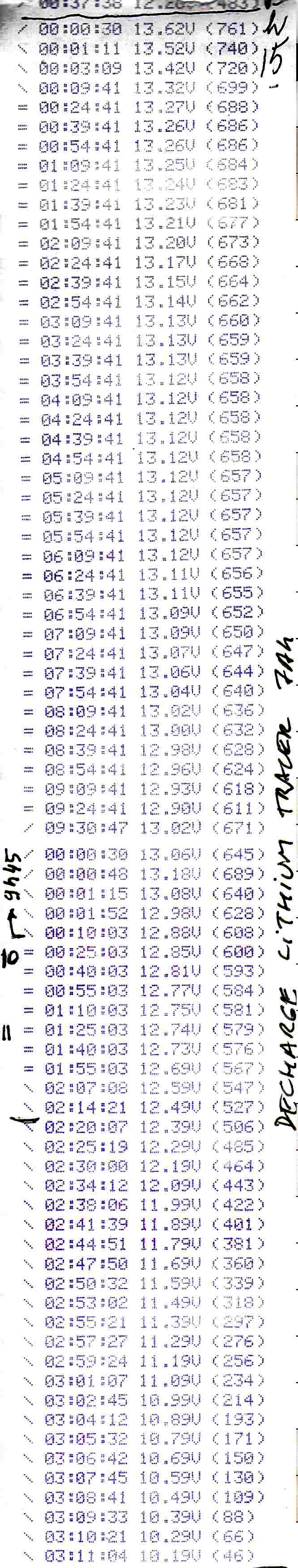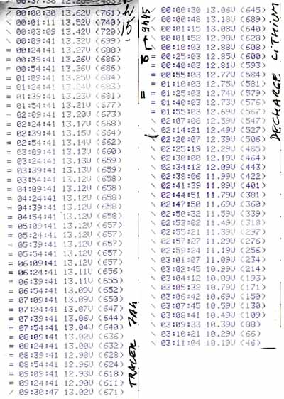 De test met een ontlaadstroom van 2A geeft een capaciteit van 6.67Ah (nieuwe accupack). Dit is een normale waarde aangezien de ontlading met een hogere stroom gebeurde dan een gestandardiseerde ontlading met 0.7A. Bij een ontlaadstroom van 0.5A is de capaciteit 7.1Ah. De energie hangt eveneens af van de ontlaadstroom en bedraagt 90Wh bij een ontlaadstroom van 0.5A.