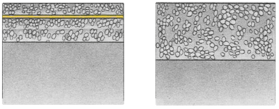 Voorstelling van een filmemulsie. De dikte van de emulsie is vergelijkbaar met die van zwart-wit film. Het is belangrijk dat de kleurkoppelaars (die de kleuren zullen produceren) niet migreren naar andere lagen.