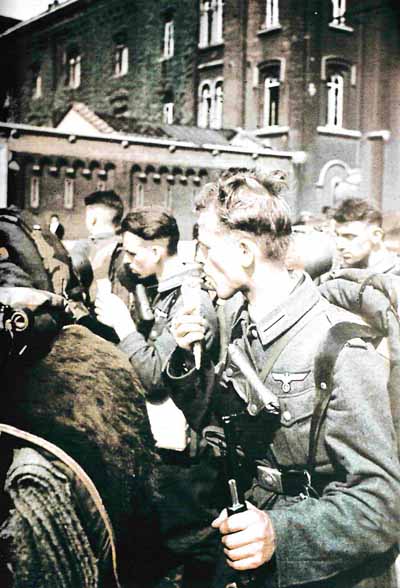 De foto's werden veelvuldig gebruikt in verschillende duitse tijdschriften die internationaal verspreid werden. België was een soort Theresienstadt: een vitrine die aan de buitenwereld voorgeschoteld werd, maar de bevolking had zeer weinig te eten, mijn ouders vertelden dat meel aangelengd werd met zaagsel om tot een voldoende volume te geraken (ieder inwoner had recht op zoveel gram meel per week). Dat er geen brood met dat meel gebakken kon worden hoeft geen betoog: het meel wordt met water gemengd en als een soort pap gedronken (waarbij het zaagsel gaat bovendrijven op het papwater).
