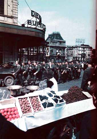 Dan bevat het boek een deel over het leven in België: de duitse soldaten die een ijsje eten in de zomer van 1940, het leven gaat verder met cabaretvoorstellingen. De marktkraampjes moeten aantonen dat er geen voedselschaarste is. De kraampjes staan prominent in beeld en op de achtergrond marcheerte en groep duitse soldaten. Maar fruit is onbetaalbaar voor de gewone brusselaar, dat wordt er niet bij vermeld.