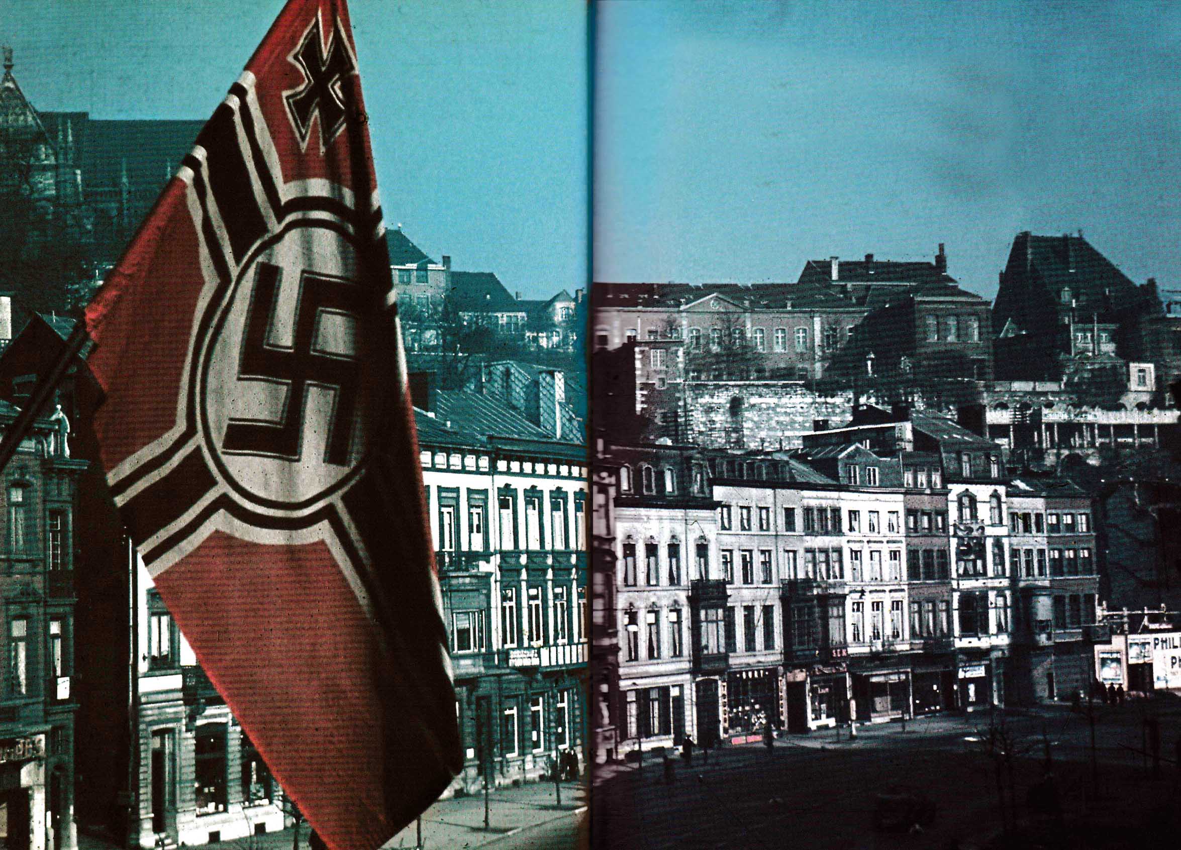 De duitsers waren geinteresseerd in architectuur. Niet de volkswijken van de stad, maar de meest imposante gebouwen zoals het justitiepaleis in Brussel, Brabo (heel specifiek gefotografeerd), de Boulevard de la Sauvenière in Luik met een opvallende hakenkruis op het voorplan, de Borinage en Beringen om de werkende mens te tonen.